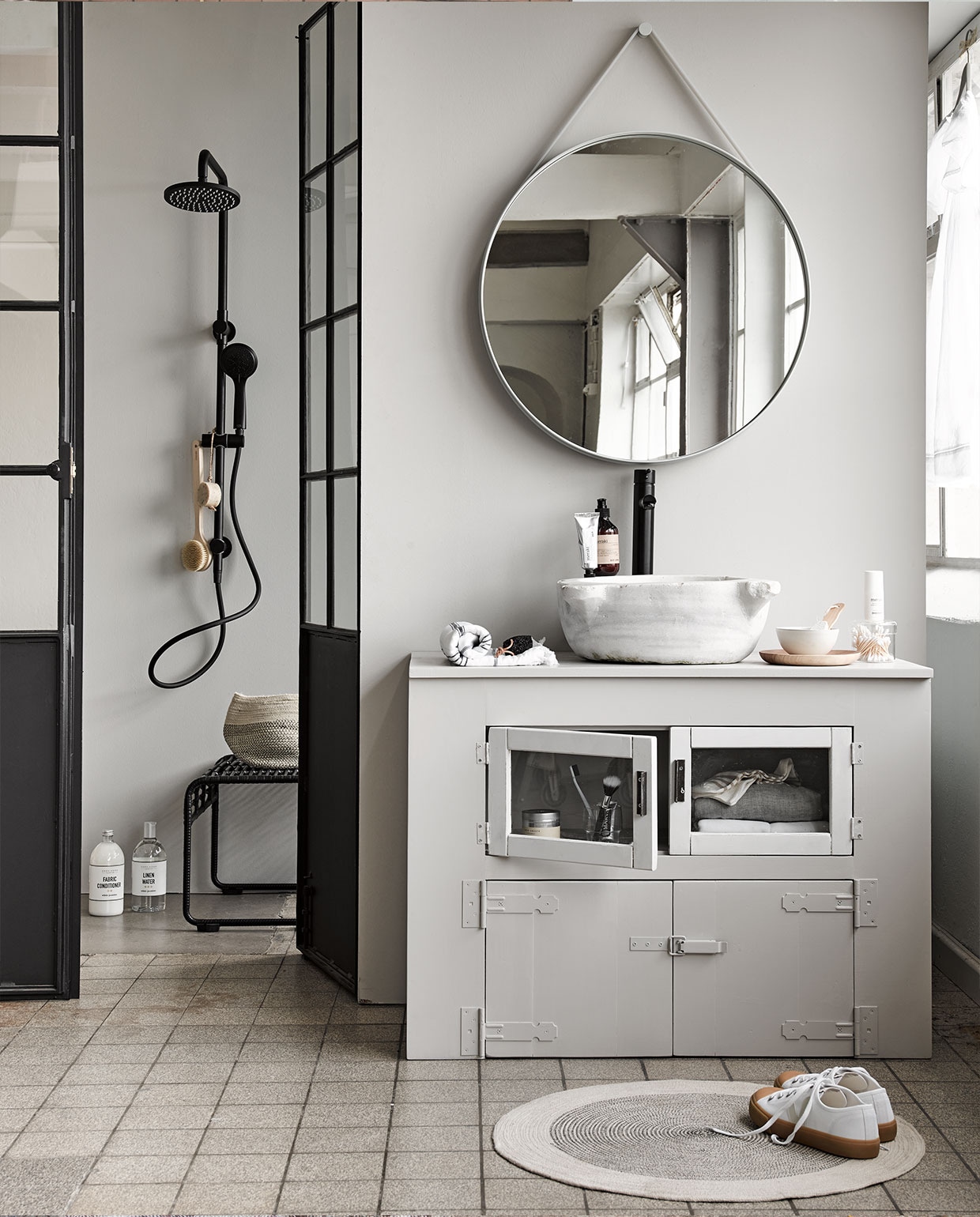 Voorkom dat de grijze badkamer vlak overkomt door met verschillende grijstinten te werken: het ook wel bekende ton-sur-ton.