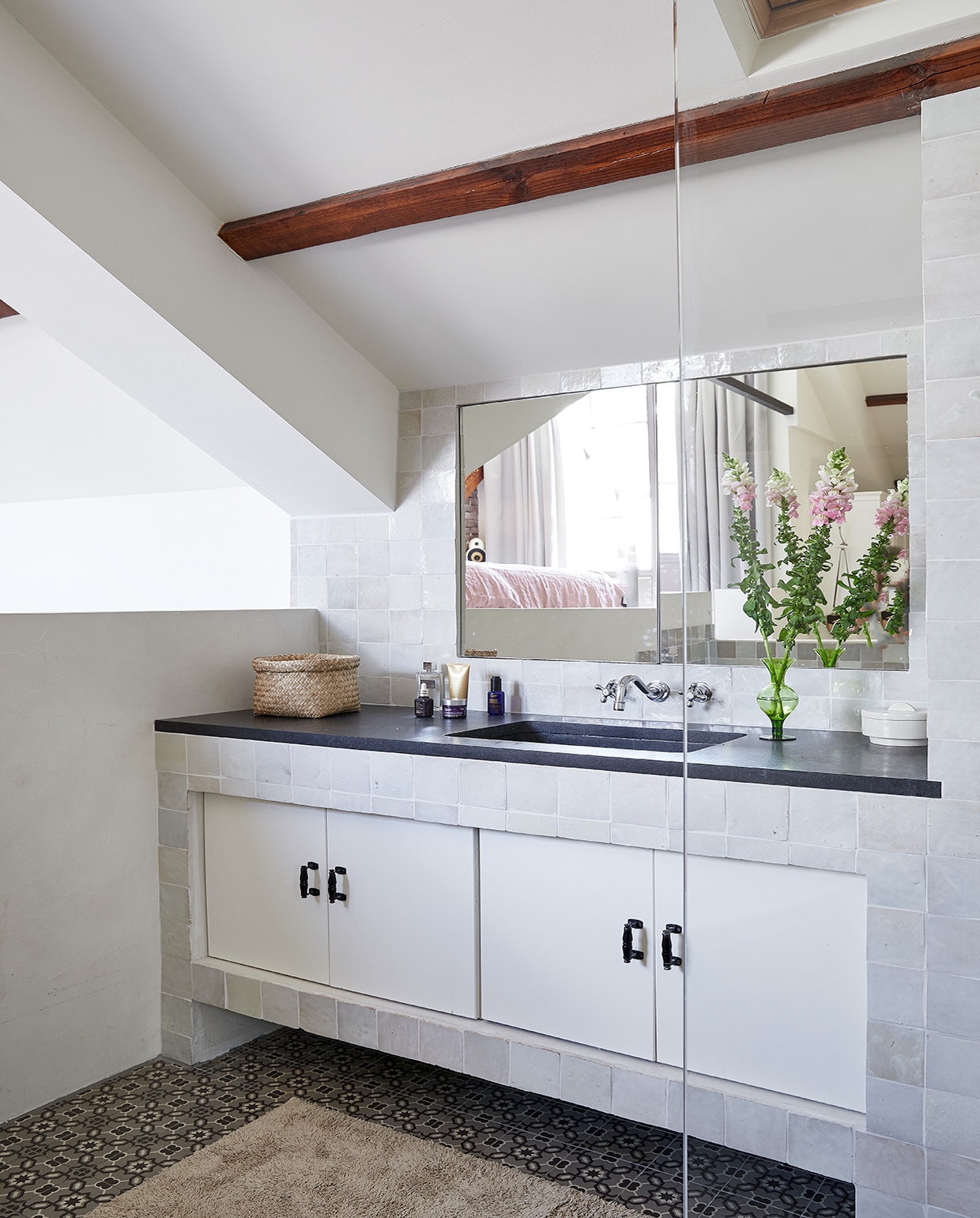 Proberen, dat is het geheim van het interieur van Martine. 'Ik schuif en rommel veel met kunst, vloerkleden of meubels. Van boven naar beneden en andersom. Dat wordt niet altijd gewaardeerd door iedereen in huis, omdat dit in de verbouwde school eigenlijk alleen in de woonkamer en kinderkamers kan. We werkten vooral met oude materialen en meubels. Ik ben bijvoorbeeld gek op een gietvloer, maar dat deed het pand geen recht. De eikenhouten vloer lieten we trommelen en schaven om het een ouder effect te geven.'