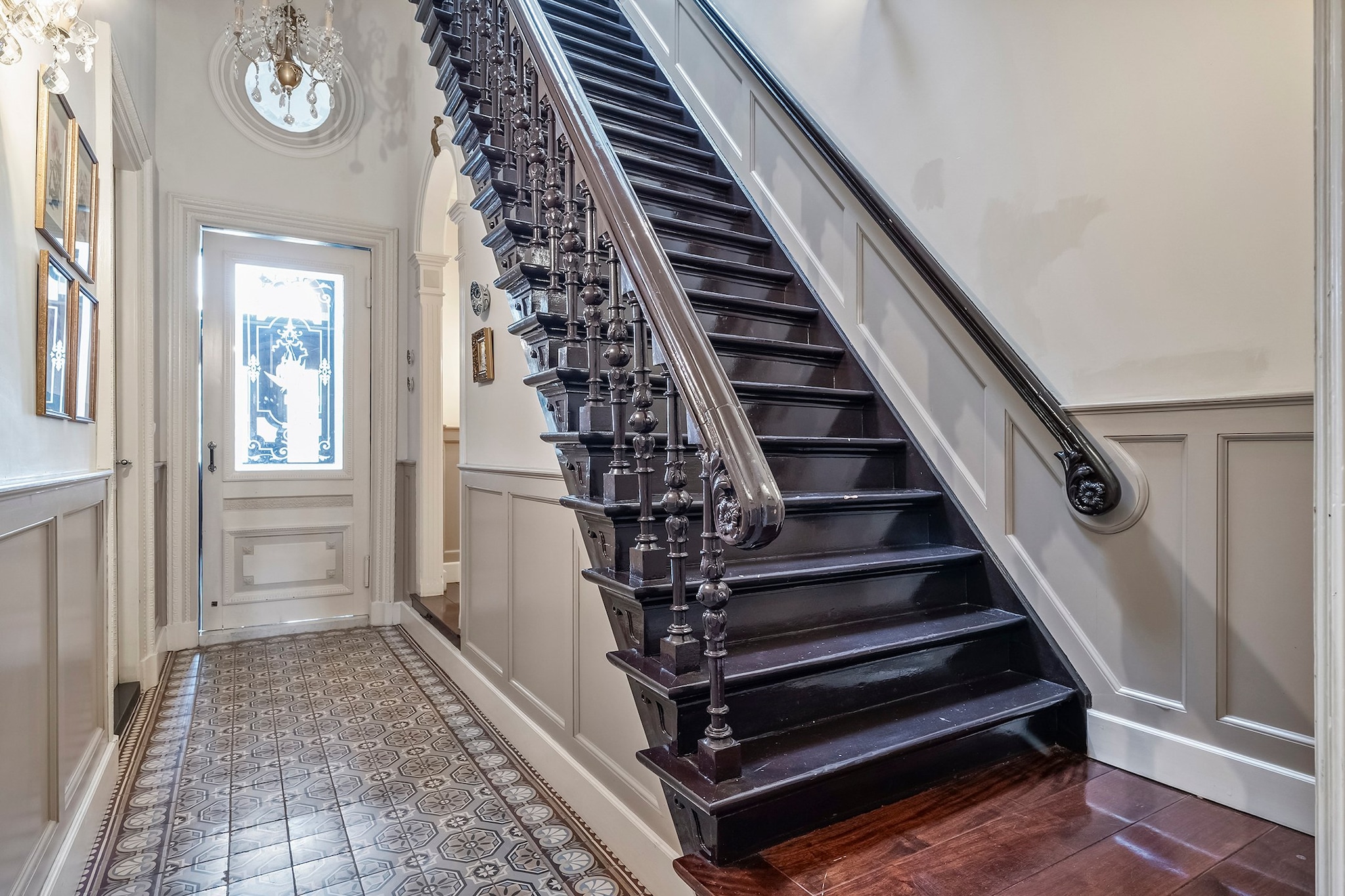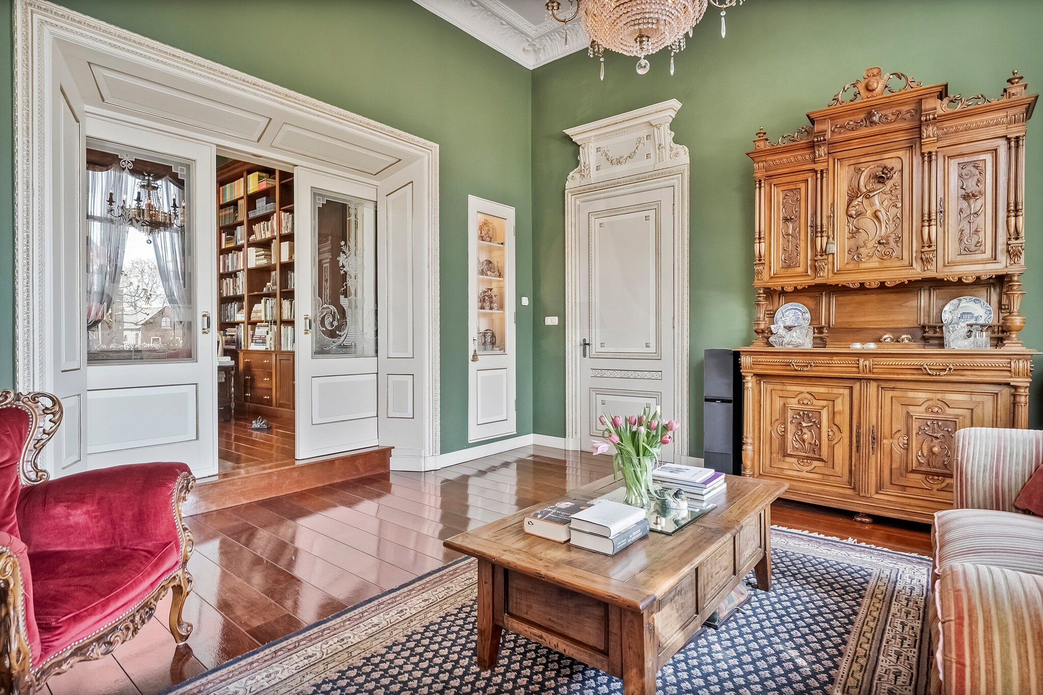 De bewoners hebben veel authentieke elementen dus gekoesterd. Toch is er een grote verandering gedaan aan het 19e-eeuwse herenhuis. Waar voorheen de paardenstal zat, bevindt zich nu een homegym met een verende vloer. Op de eerste verdieping en zolder zijn er genoeg slaapplekken voor een groot gezin of gasten (met en-suitebadkamer), maar ook werkruimtes. Voor nog meer logés is het tot appartement omgebouwde koetshuis op het eigen erf een uitkomst. Dat kan ook ideaal zijn voor wie een (pre)mantelzorgwoning zoekt of een B&B wil beginnen.