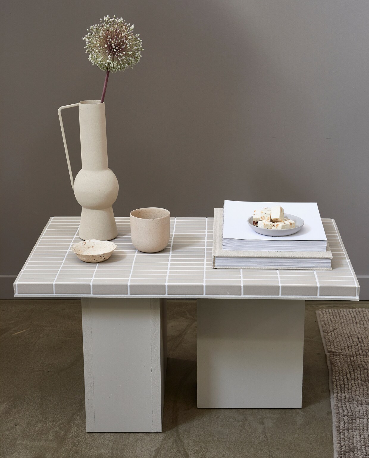 Voor een tafel van 68,8x44,9x36 cm (lxbxh). Het formaat van het tafelblad is afgestemd op tegelformaat, in dit geval passen er precies 18 tegels in de breedte en 9 in de lengte.
