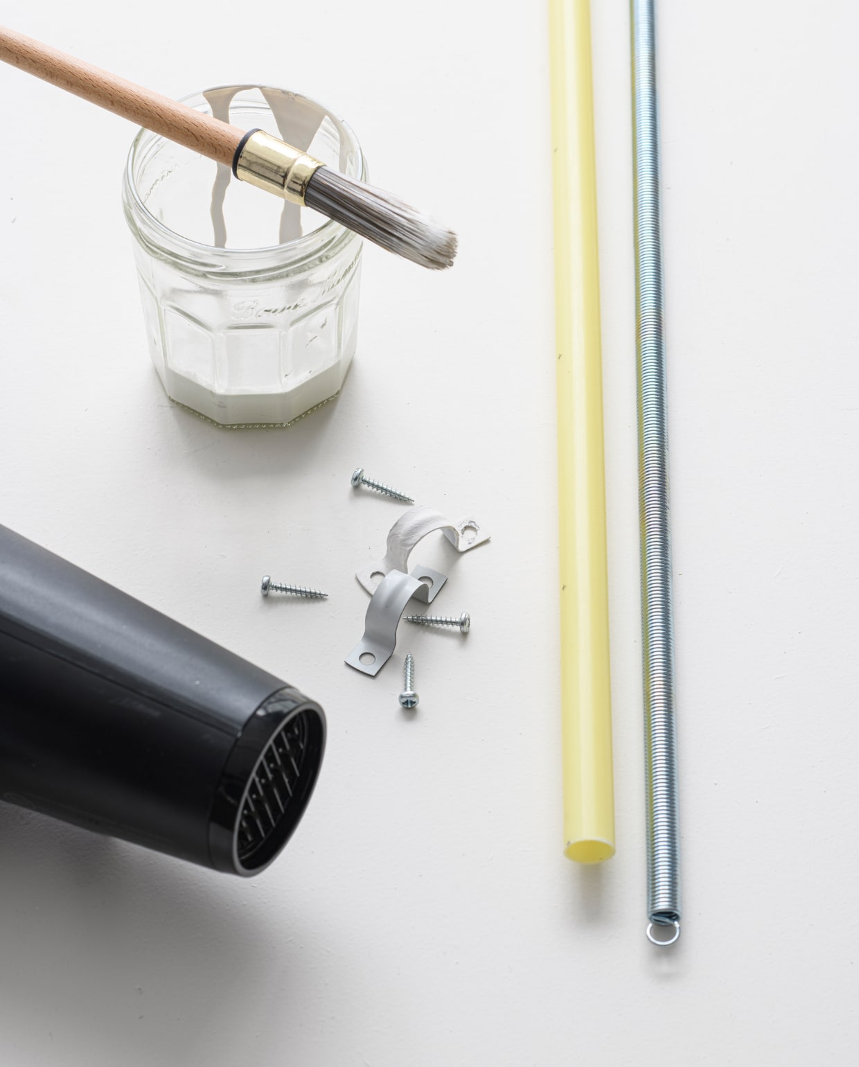 Duw de buigveer in de buis. Verwarm de buis rondom met de föhn en buig tot de gewenste boog. Laat afkoelen en uitharden.