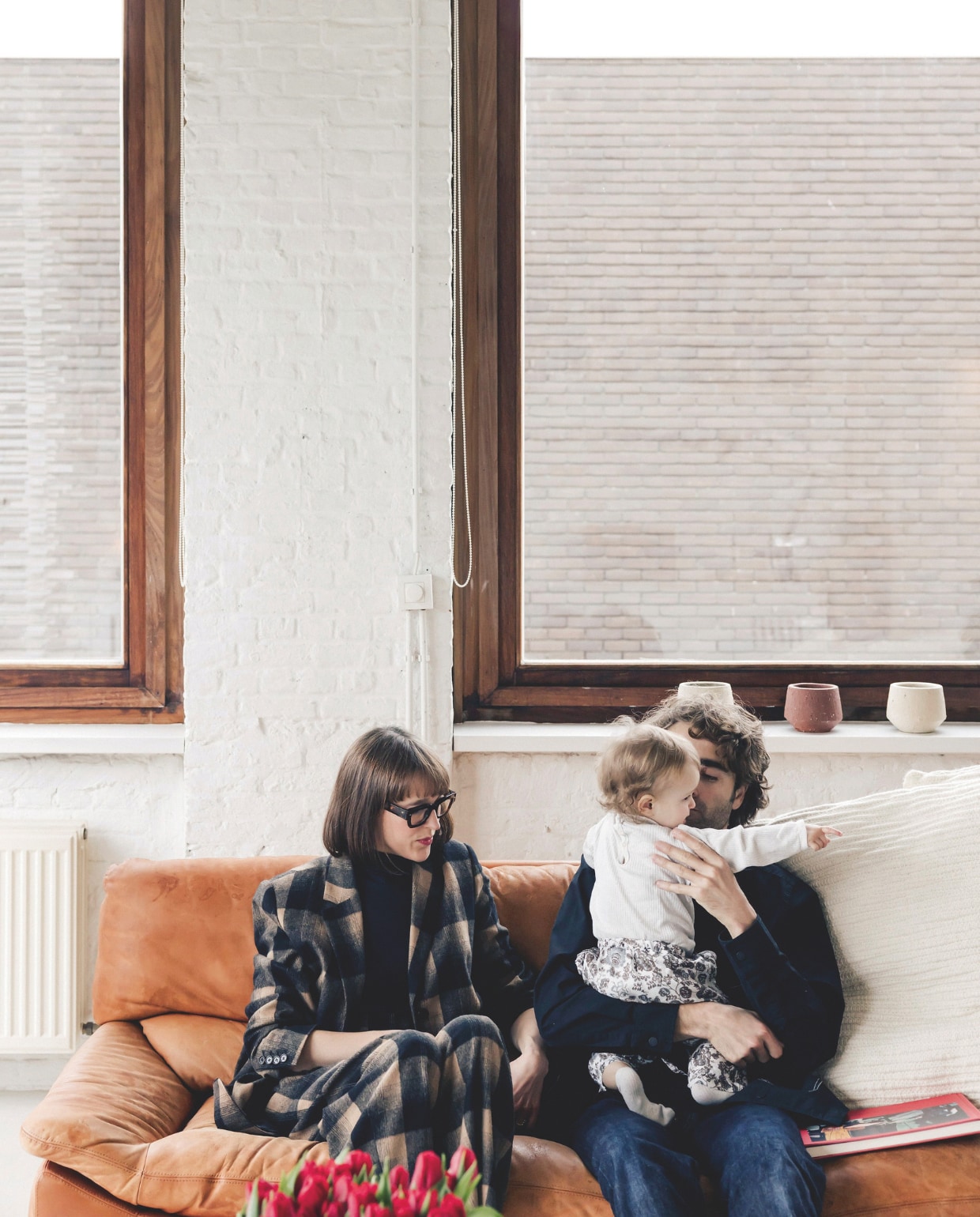Raphaël trok vier jaar geleden bij Frédérique in en samen kregen ze een zoon. 'Raphaël voegde vooral planten toe, wat het nog huiselijker maakt. De kinderspullen van Maxence probeer ik te integreren in het interieur, omdat je alles fel ziet in de open ruimte. Zijn witte box staat in het verlengde van de witte tafel, we kochten een rood Vitra-stoeltje voor hem en zijn speelgoed zit in een witte kist waarop mijn moeder een rode mond schilderde, als knipoog naar een schilderij van Man Ray.'
